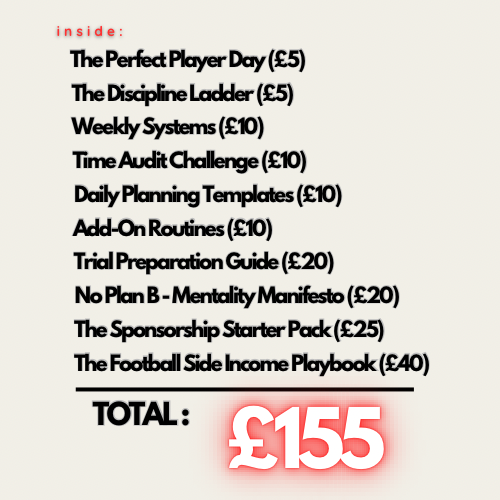 The Footballer Lifestyle Suite – World Class Edition combines 10 proven, high-performance systems designed to give you the structure, discipline, and mindset of a pro.