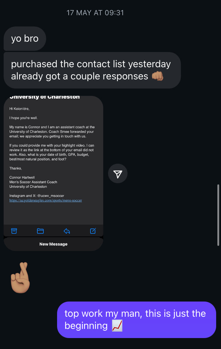 Want to get recruited or promote your athlete? This is your direct line to every NCAA Division 1 men’s soccer program.